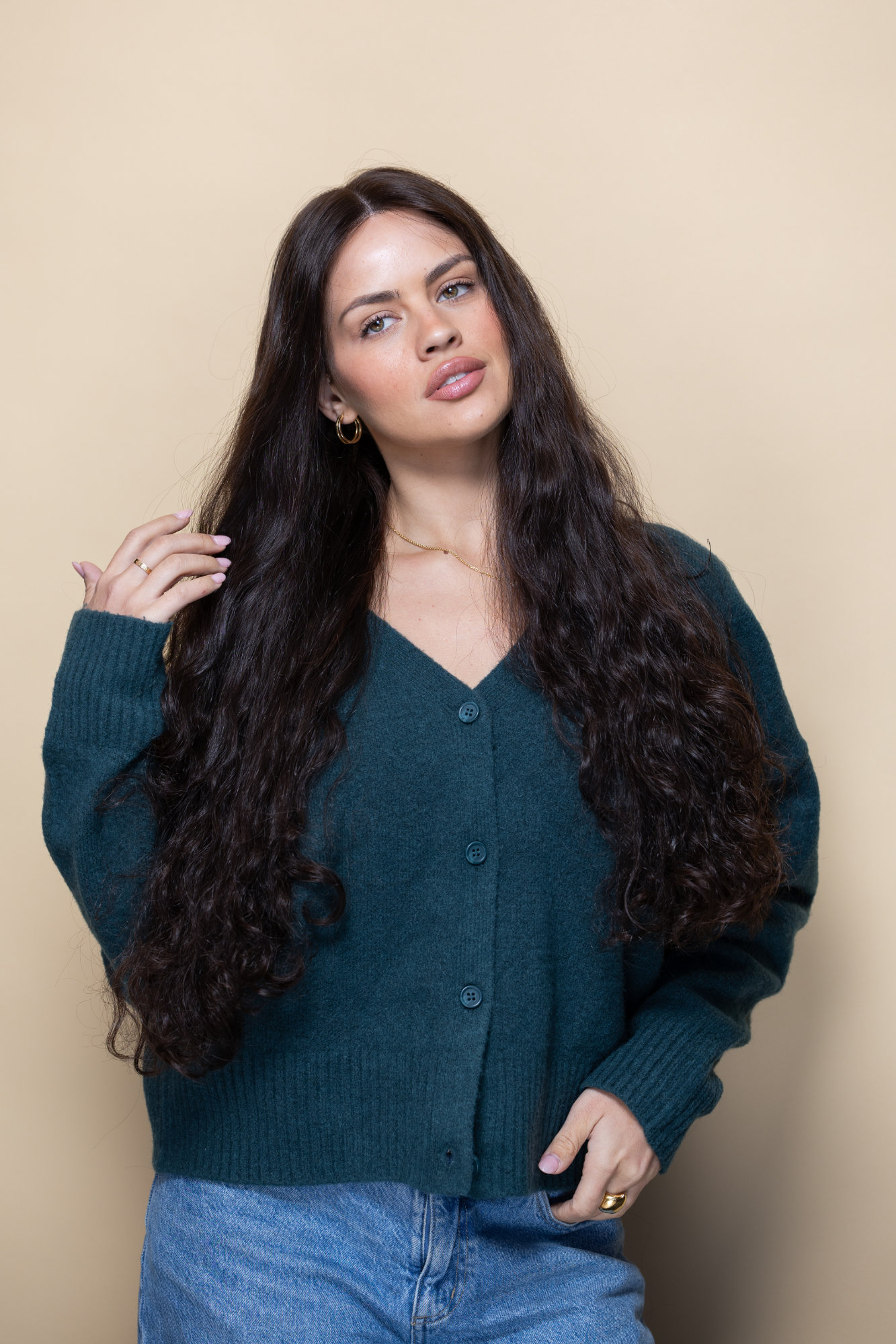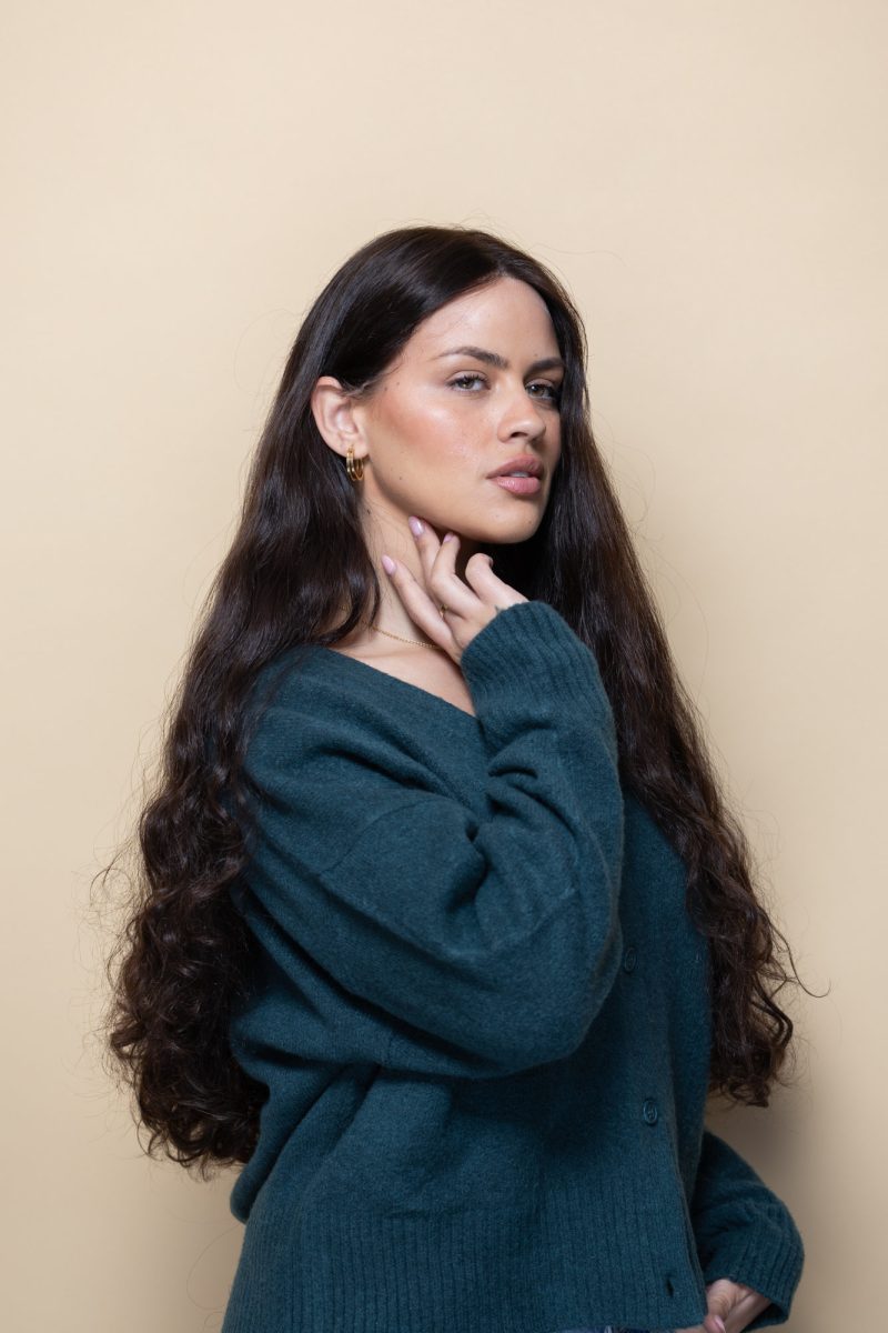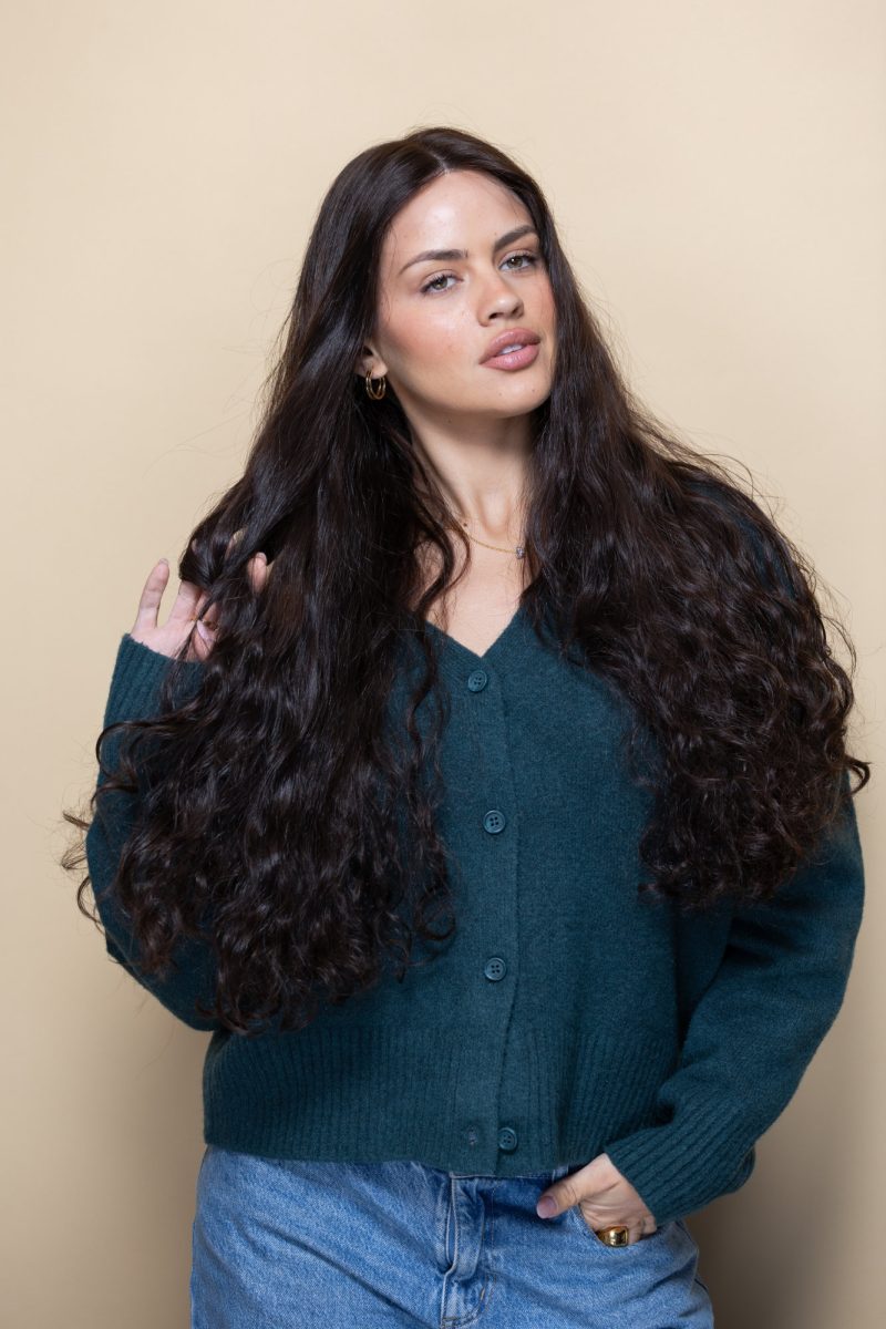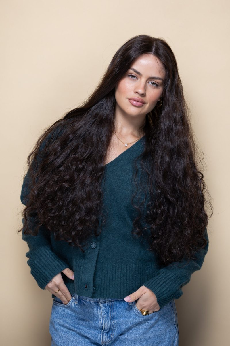 Alexandra is a statement wig with natural, stunning curls. The wig is long and has a rich brown colour. As much as this wig has volume and bounce, its lightweight does not feel heavy on the head. The hair we used is naturally curly, so it acts just like curly hair. Wear it up, wear it down, it’s bound to turn heads.