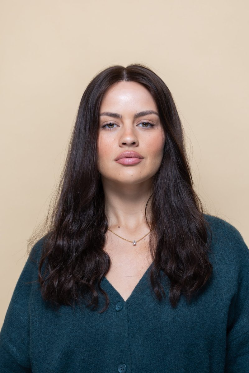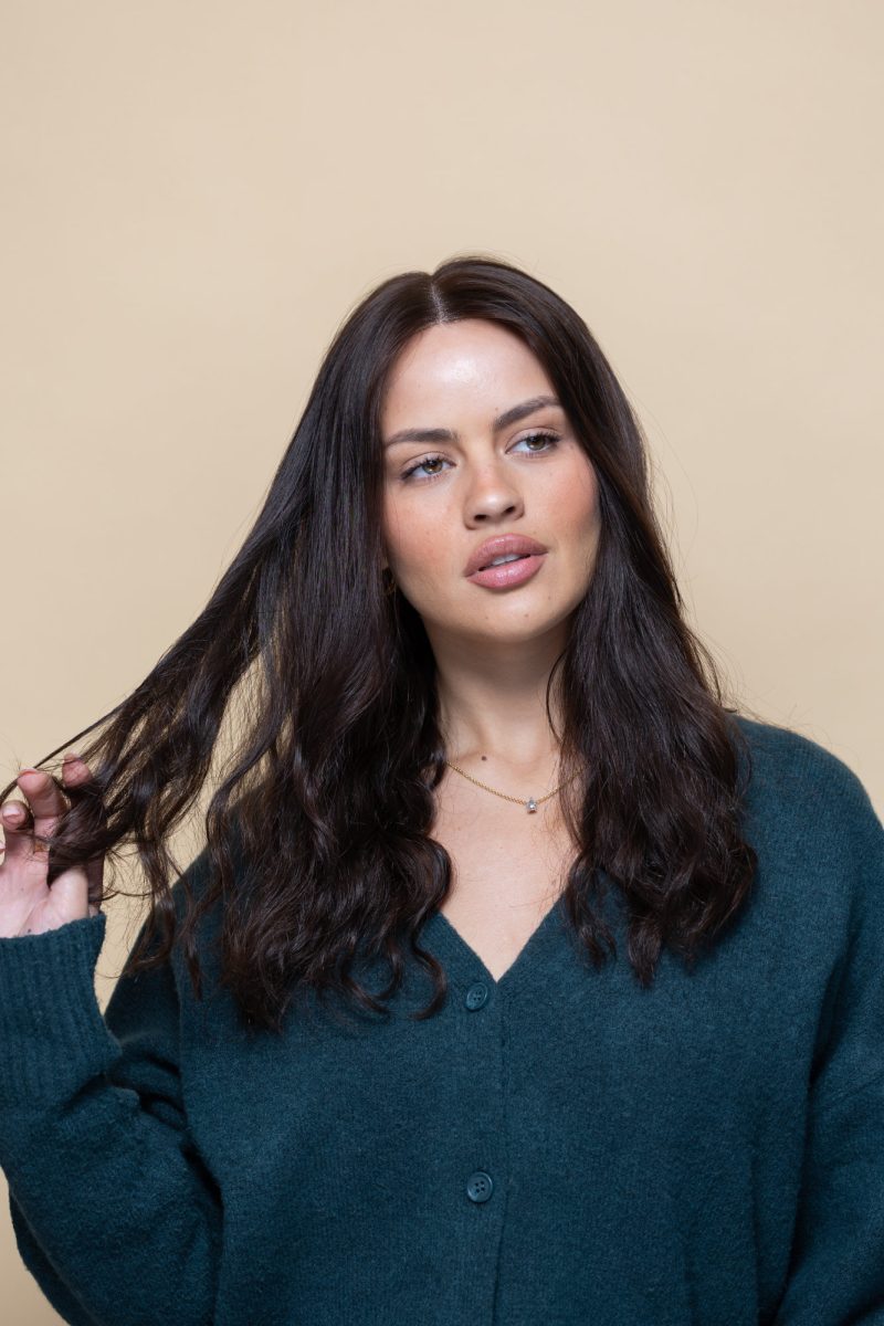 Daisy is where natural beauty meets effortless style with our dark brown wavy low-density wig. The rich, dark brown shade offers depth and elegance, complemented by soft, flowing waves.
